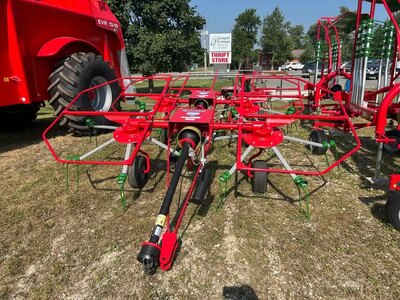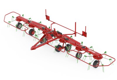 Tedder VORTEX G6 series with working width up to 7.45 m. Available in both mounted and pull type versions. Equipped with cardan shaft with safety...