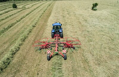 The double rotor rakes model TRACER 780 has been designed for 2 single swaths or a single side swath. Trailed tractor hitch. The working width is...