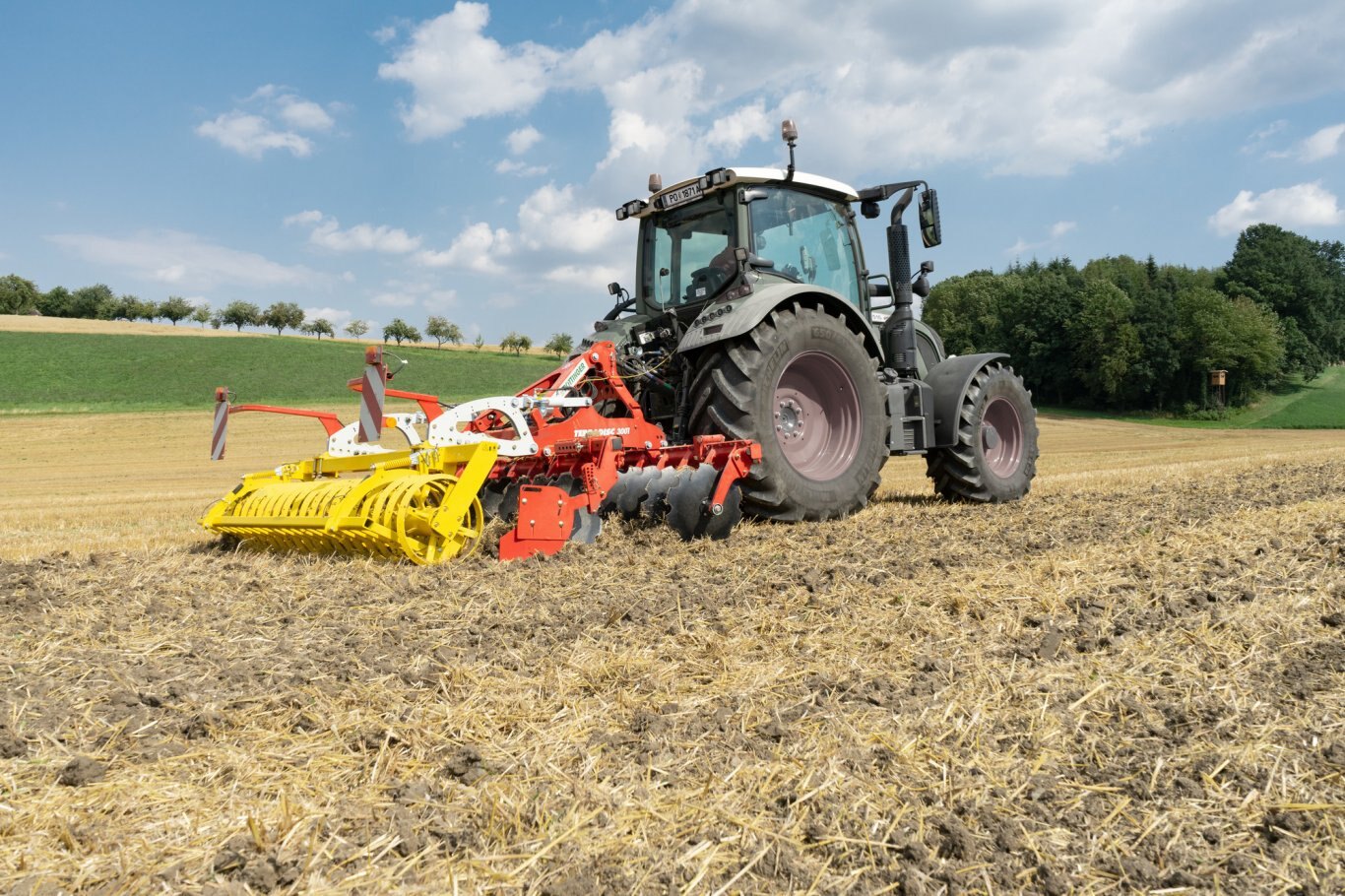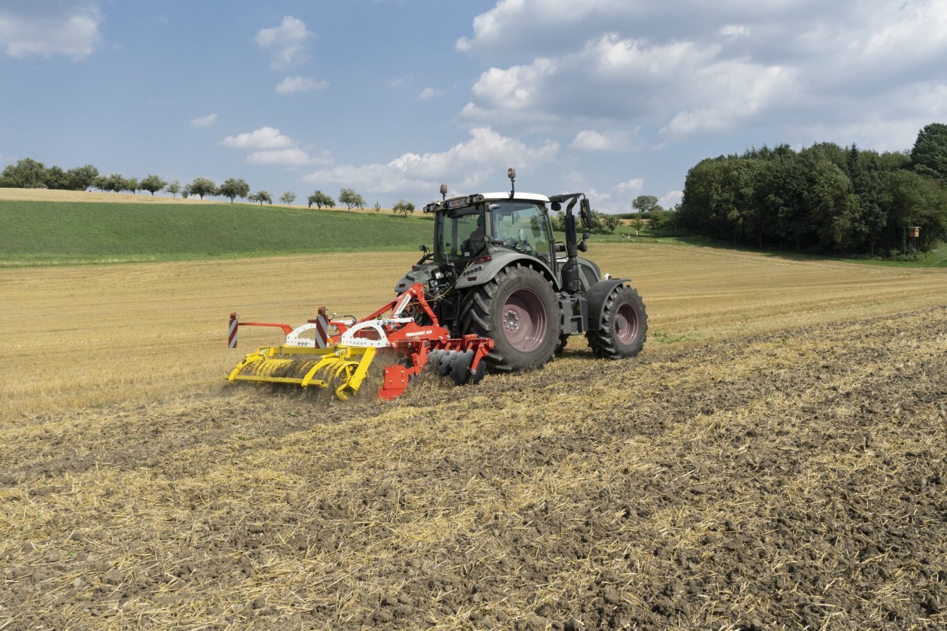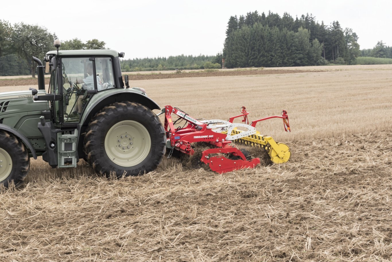 Compact design is a key feature of PÖTTINGER disc harrows. Working depths between 5 and 15 cm are possible. The offset configuration of the aggressively set discs mixes the harvest residues effectively into the soil.