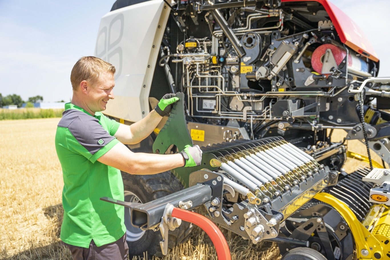 The baling chamber is suitable for all crops in all operating conditions. By using up to 32 knives, you can achieve the best chopping quality right up to the edge of the bale. The unique EASY MOVE knife bank, which can be pulled out from the side, gives you a whole new experience of changing knives on a round baler.