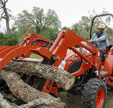 - A built-in parking stand on the front end loader provides quick and easy connection.