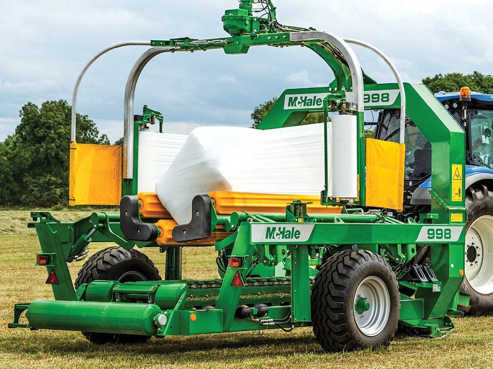 McHale 998 – Square Bale WrapperWatch the video for the 998 square bale wrapper, a high-output machine packed with features including a fully integrated, PTO driven, load sensing hydraulics system, conveyor loading with fast positioning of the square bale into the bale wrapping position, hydraulically operated cut & tie system, auto square bale levelling and a two point linkage mounted swivel headstock. |