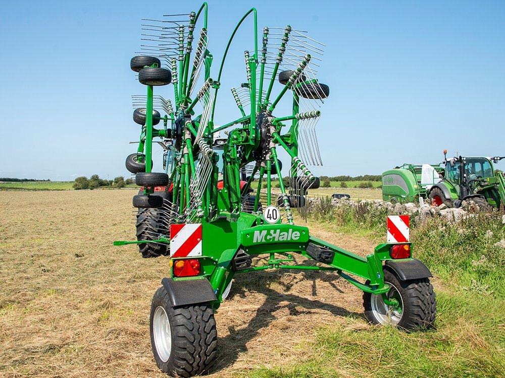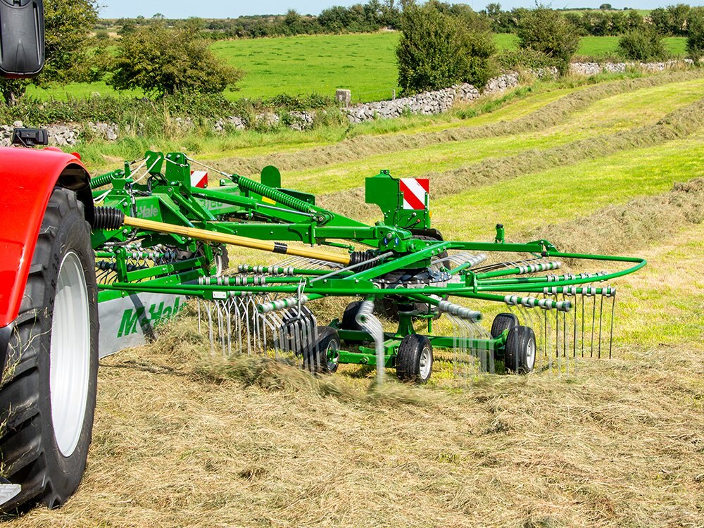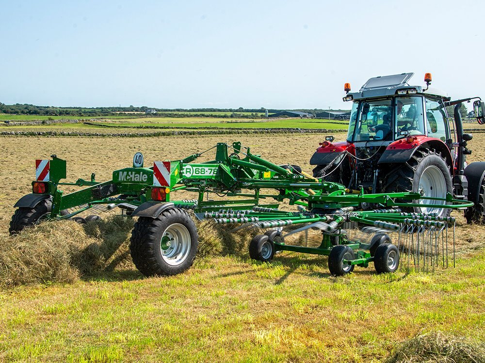R 68-78 Centre Delivery RakeBuilding on their comprehensive range of grass machinery, McHale now introduce their R 68-78 centre delivery rake. McHale rakes have been tested in the world’s most difficult conditions, in order to deliver a strong and robust machine, which is efficient and reliable in all terrain. The McHale R 68-78 rake is an ideal machine for those who want to get the best quality fodder, by delivering an aerated swath. The R 68-78 delivers an ideal swath for maximum baling and harvesting output. |