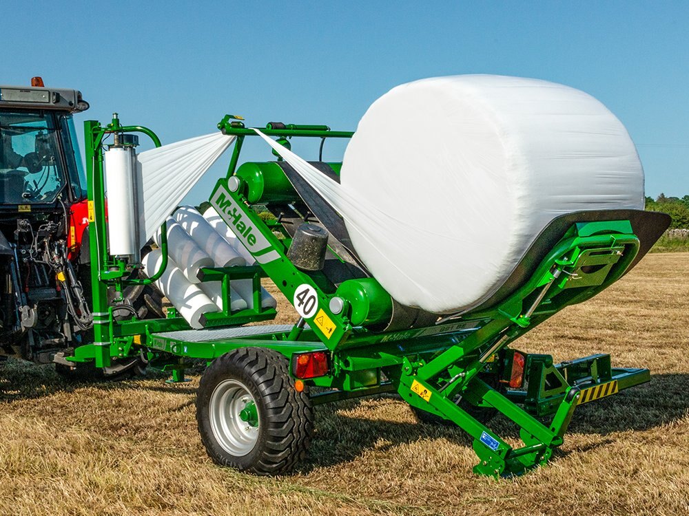991 BC Cable Controlled Trailed Round Bale WrapperMcHale’s round bale wrapper range has been designed with the demands of today’s farmer and contractor in mind. This common-sense approach to design ensures that each machine’s operation is kept simple and user friendly. Farmers and contractors all over the world are under pressure to reduce costs and increase output. To help with this, McHale concentrate on features like the patented hydraulic ground supported bale damper system, patented high-speed transfer system, patented tip rollers, hydraulically operated cut & hold system, 750mm dispensers and high specification components. These features ensure long working life, reliability and a machine rugged enough to handle the toughest crops, heaviest bales and roughest ground conditions. |