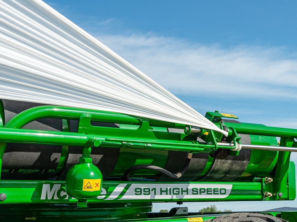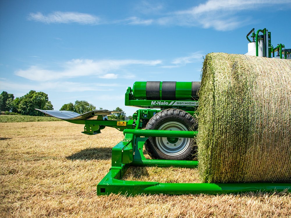 | The McHale 991 BC round bale wrapper is the entry level machine in the 991 B range. The McHale 991 BC uses four individual levers to control all wrapping functions. The cable-controlled levers on this round bale wrapper allow the operator to control: |