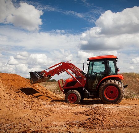 - A built-in parking stand on the front end loader provides quick and easy connection.