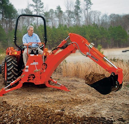 - Entire backhoe except for subframe is quick-detached from tractor.