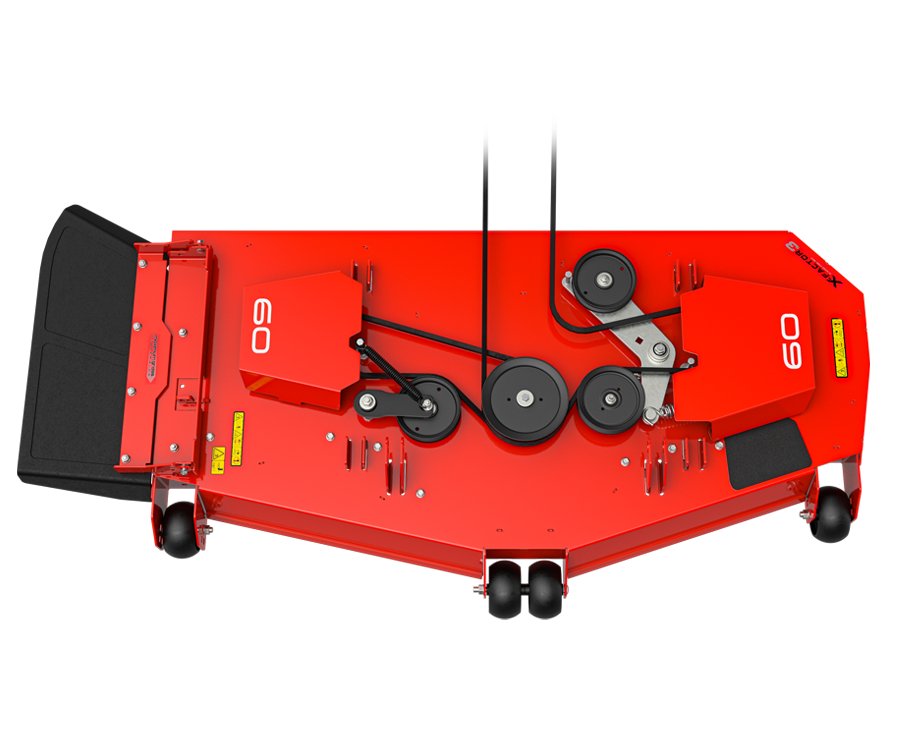 7-gauge steel and specially designed for better grass dispersion thanks to its larger discharge opening, integrated baffles, and sloped front end.