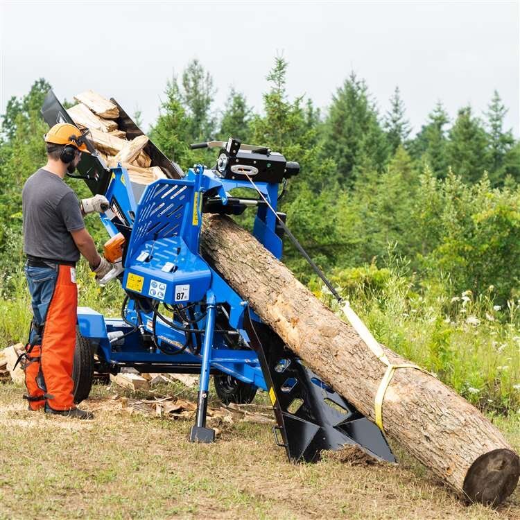 Hydraulic winch makes it very easy to winch in your heavy logs. |