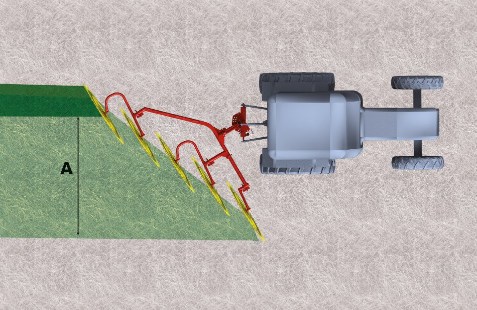 It is possible to adjust the ground pressure of the rake wheels according to the quantity of the product and the quality of the ground. |