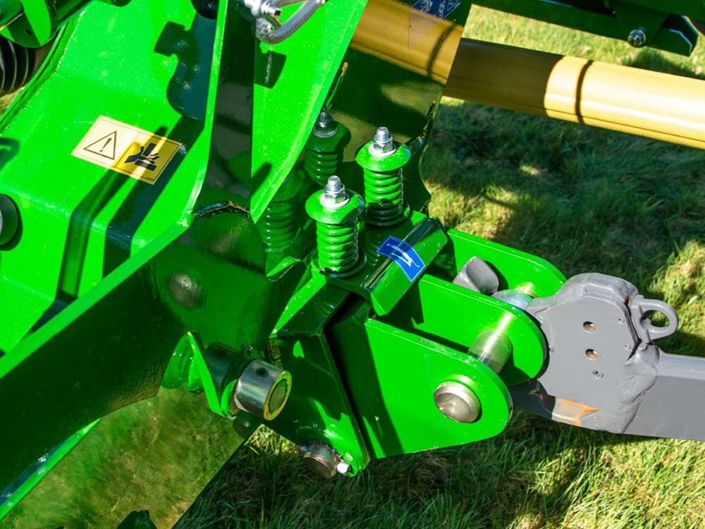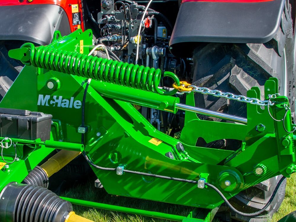 The McHale Pro Glide B910 mower has excellent ground following capabilities delivering superior floatation. The mower is fitted with a patented ground adaptation technology which delivers 3-dimensional contour tracking of the ground. This allows the mower to easily mow on rough or undulating terrain and still deliver optimal results. Most rear mowers have a central pin which allows the mower to move left and right to adjust to changes in ground condition. The McHale Pro Glide is different in that it is fitted with a patented 3D ground tracking suspension unit, which allows the mower to: