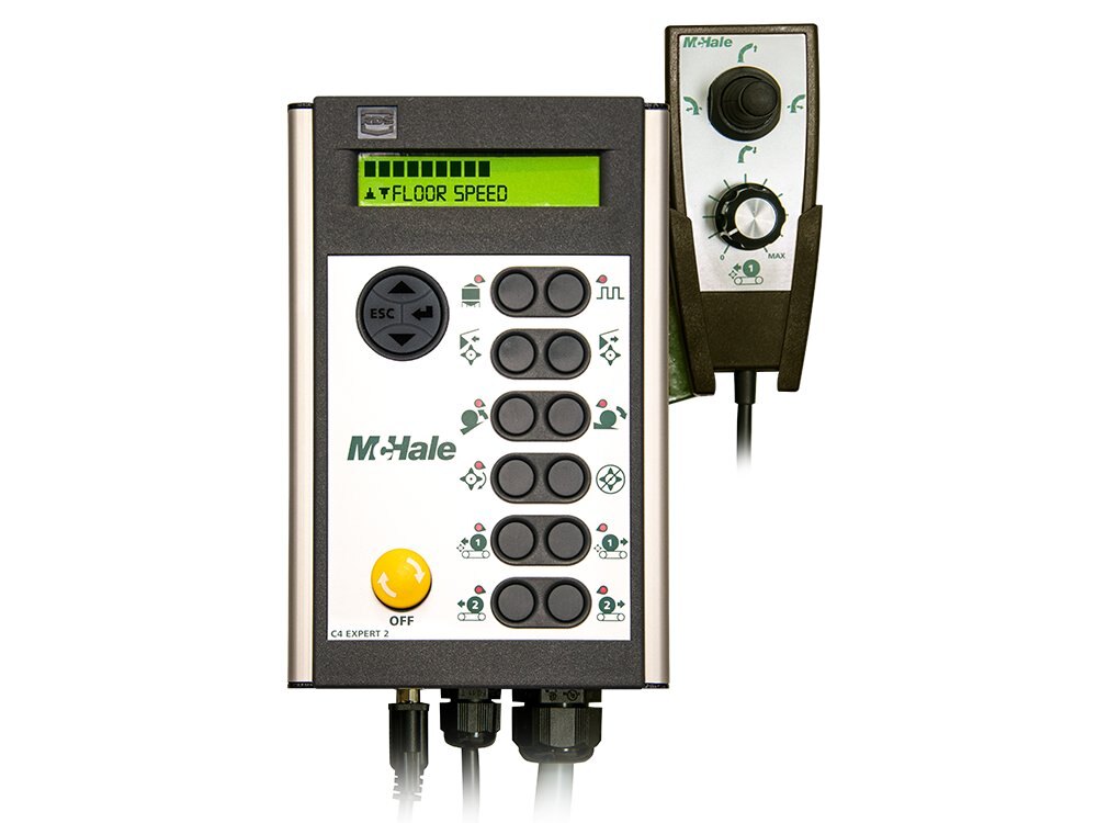 FeedingThe McHale C4 range of machines are ideal machines for feeding silage and hay, the twin speed gearbox allows silage and hay to be distributed exactly where it is desired. The speed of the conveyor is proportionally controlled allowing the operator to adjust feeding speed depending on the material density and composition. |
