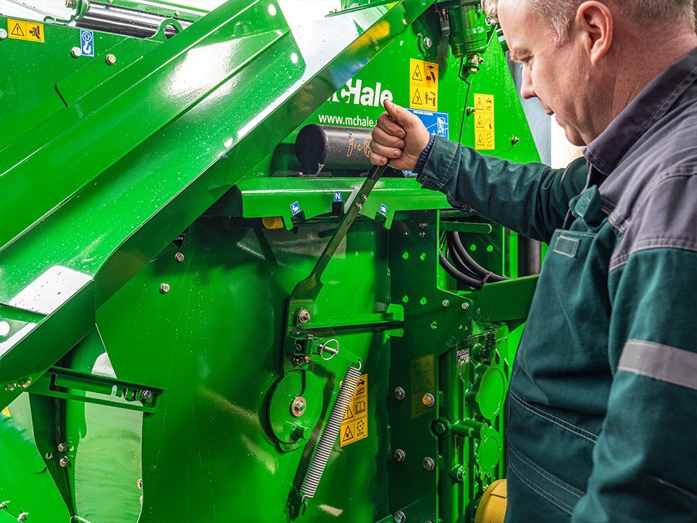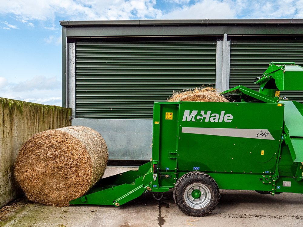 | The extra capacity of the McHale C490 allows farmers to increase their output when bedding or feeding, especially if they may be using the machine on another farm which is some distance away from the main farm. The McHale C490 is available with an optional linkage drawbar which allows the machine greater access to tight sheds with narrow entrances. |