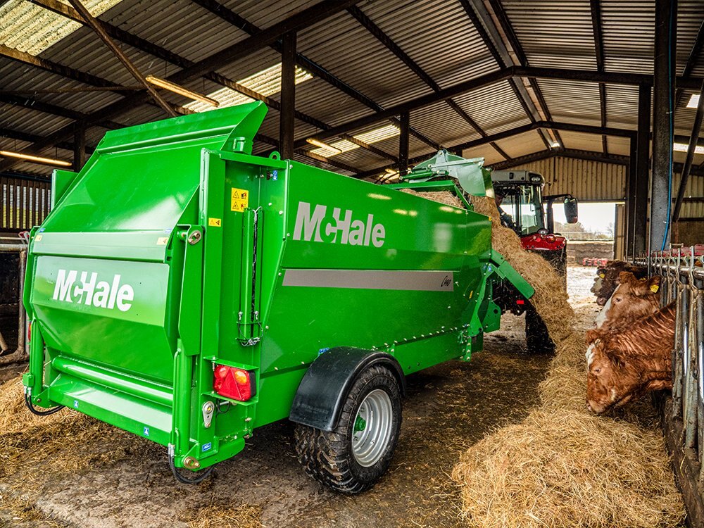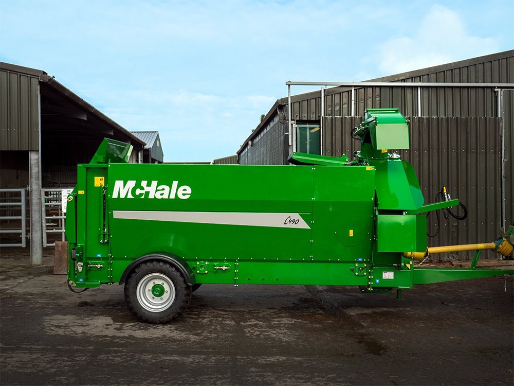 C490 Trailed Silage Feeder and Straw BlowerThe McHale C490 Trailed Silage Feeder and Straw Blower has a higher capacity to carry and blow or feed out three 5ft round bales of hay, straw, silage or haylage |