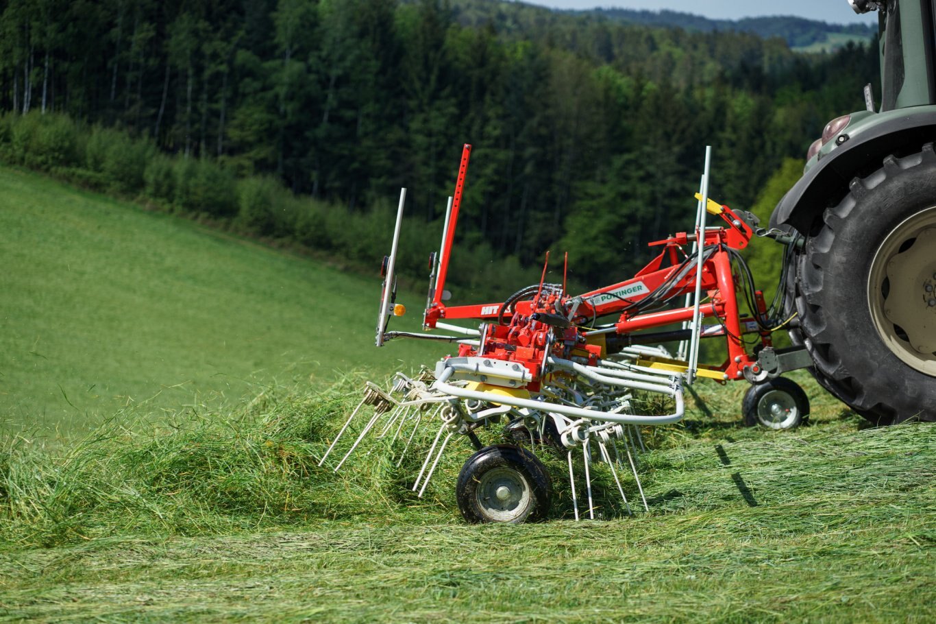 Whether Tedding silage or hay, on level ground or hillsides - POTTINGER HIT tedders get the job done perfectly. Innovative DYNATECH rotor technology ensures a clean and tidy spread pattern with maximum forage conservation. As you would expect from PÖTTINGER the tedders ground tracking works perfectly and provides ideal conditions for harvesting high quality forage.